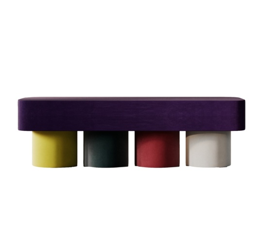 Ławka – siedzisko z kolekcji „Le Corbusier Colors 2024” to nowoczesny mebel użytkowy o wyrazistej, rzeźbiarskiej formie, zaprojektowany przez Katarzynę Jasyk. Projekt łączy miękkie, tapicerowane siedzisko z dynamiczną kompozycją kolorowych cylindrycznych nóg, tworząc obiekt na pograniczu designu i sztuki użytkowej.